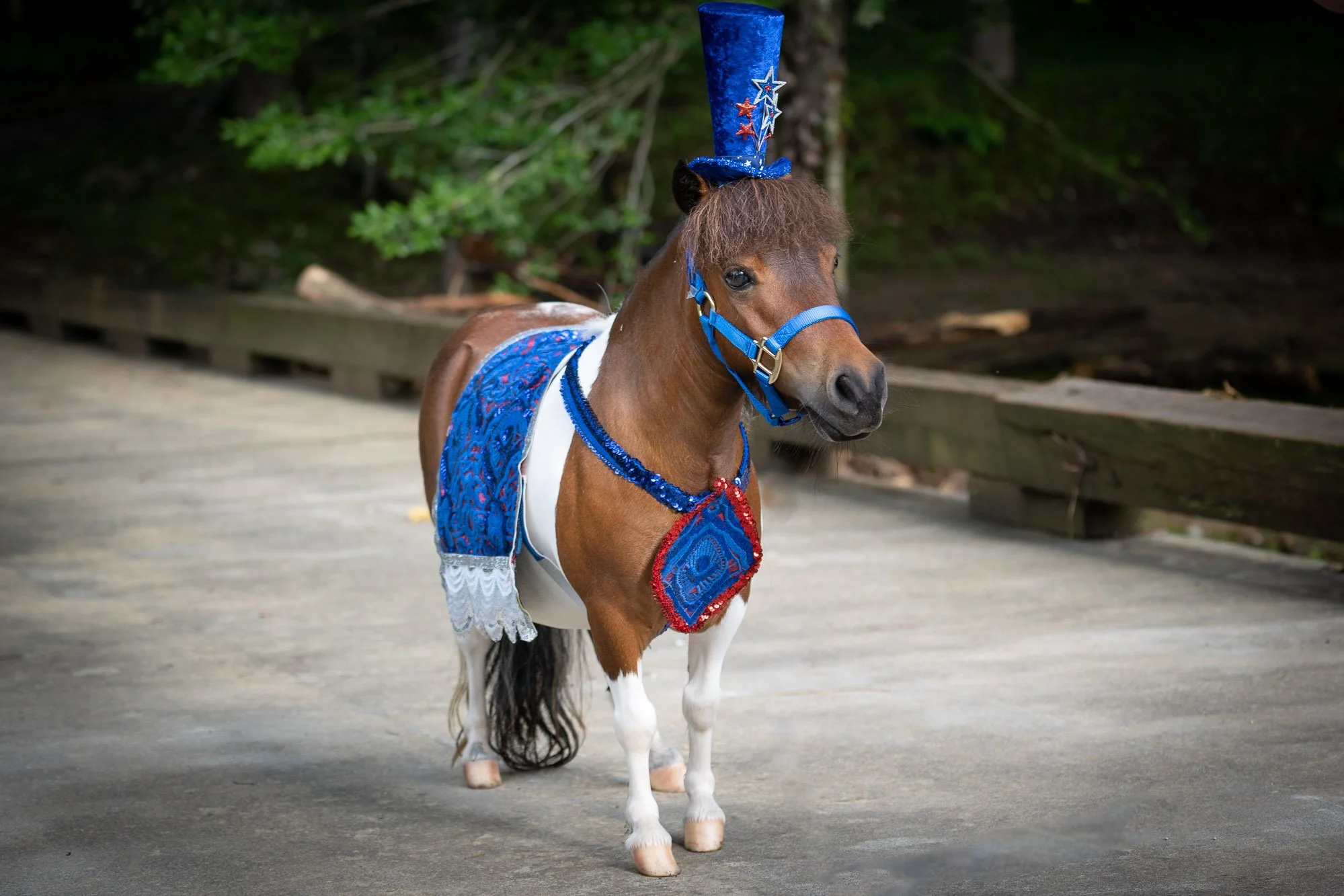 Trinket has been trained since a foal as a therapy horse literally following in her mothers footsteps into homes, hospitals and hospice to visit with folks. She is a very curious mini mare and loves to go on adventures. Of course even though she is only 25” tall she believes she is the boss of the herd - and she is!!!